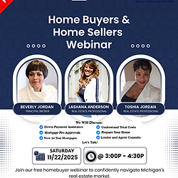 Join us for an informative Homebuyers and Home Sellers Virtual Webinar designed to guide you through the homebuying/home selling process. Whether you're a first-time buyer or looking to invest in property, this webinar will provide valuable insights and expert advice. What You'll Learn • Understanding the homebuying process from start to finish • Tips for securing financing and improving your credit score • How to choose the right neighborhood and property • Common pitfalls to avoid during the buying process • Q&A session with real estate professionals and Mortgage Lenders